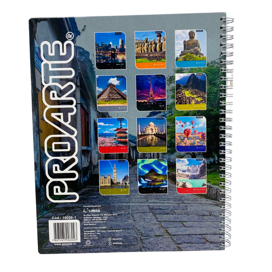 Cuaderno Universitario Proarte Maravillas el mundo M7 Espiral Doble 100 Hojas