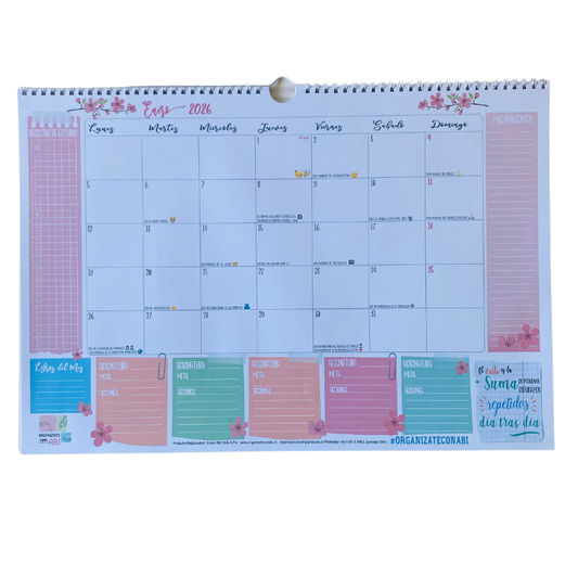 Planificador Mensual Tamaño XL Diseño Estudiante Flores 2026