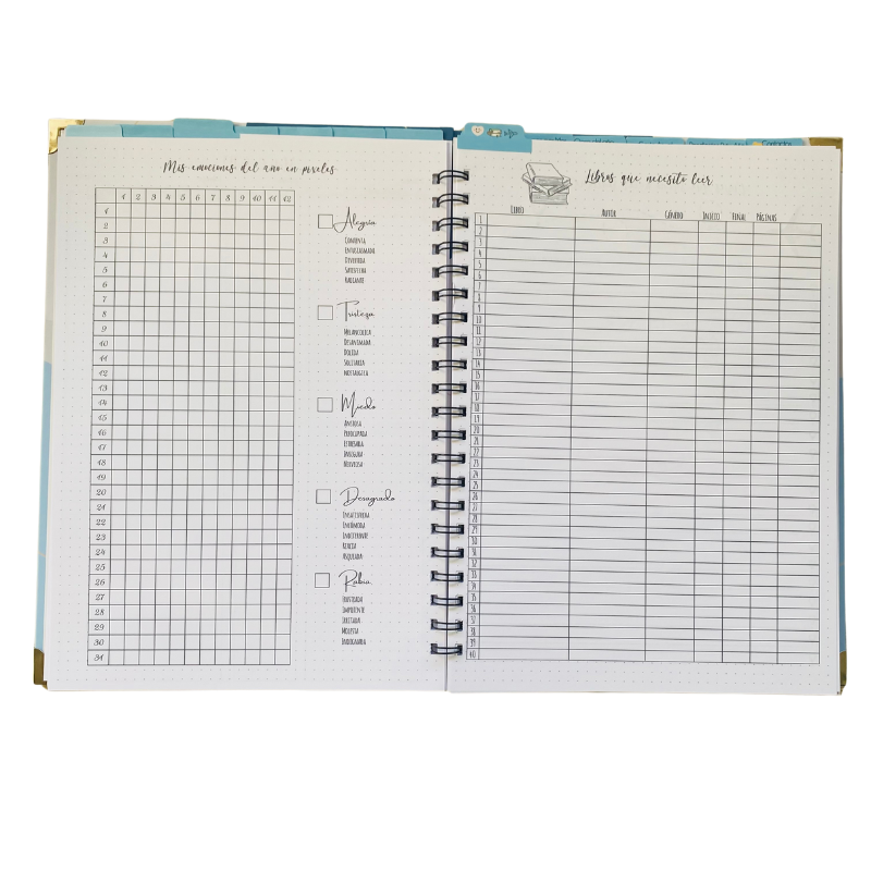 Registra cómo te sientes cada día del año en una práctica hoja de seguimiento. Este espacio te permite observar tus patrones emocionales, reflexionar sobre tu estado de ánimo y trabajar activamente en tu bienestar emocional. -